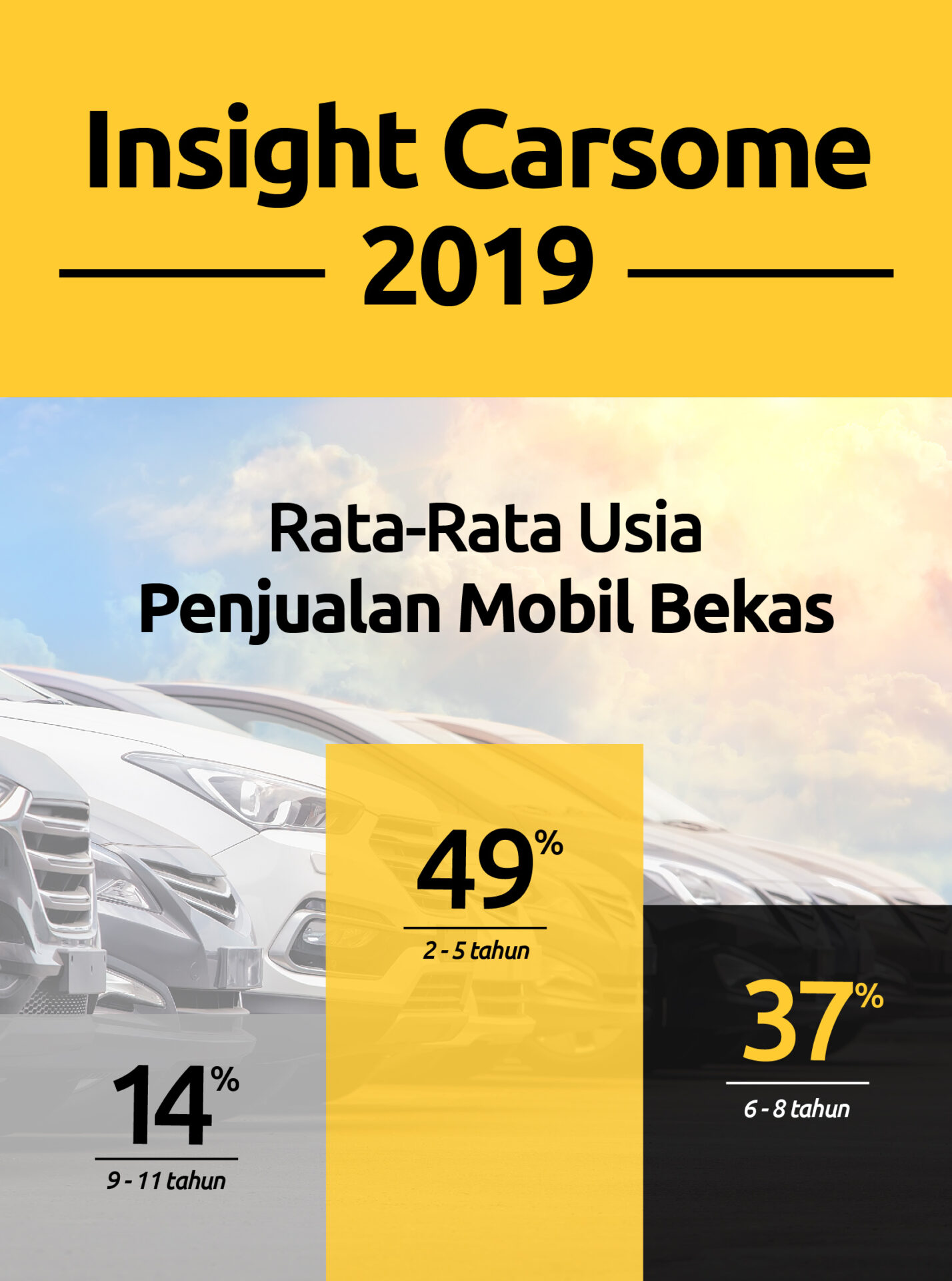 Carsome insight 2019 menemukan bahwa satu dari dua pemilik mobil di Indonesia menjual mobil mereka dalam dua hingga lima tahun pertama setelah pembelian, pilihan ini menjadi pilihan favorit banyak orang. Menyusul kemudian dengan 37% adalah mobil yang berusia enam hingga delapan tahun, menjadikan fakta bahwa tiga dari empat orang akan menjual mobil mereka sebelum memasuki tahun kesembilan.