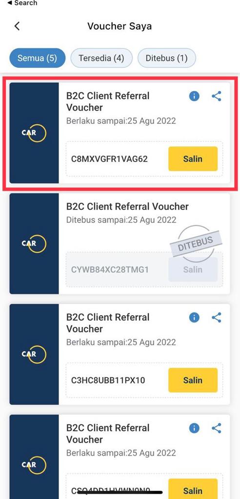 • Uang tunai senilai Rp1,000,000 hanya bisa didapatkan apabila teman Anda berhasil melakukan transaksi pembelian mobil menggunakan kode referral yang