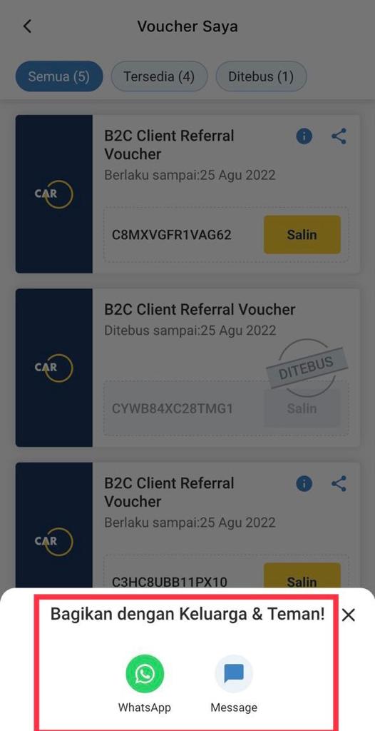 4.Klik “Bagikan” di Sebelah Kanan dan Voucher Siap Dibagikan ke Teman